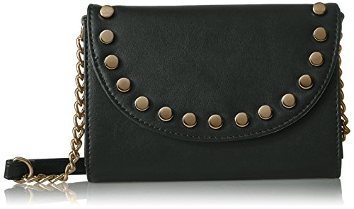 Product DescriptionFront flap with battery studs around flap, chain detail removable crossbody stap.0