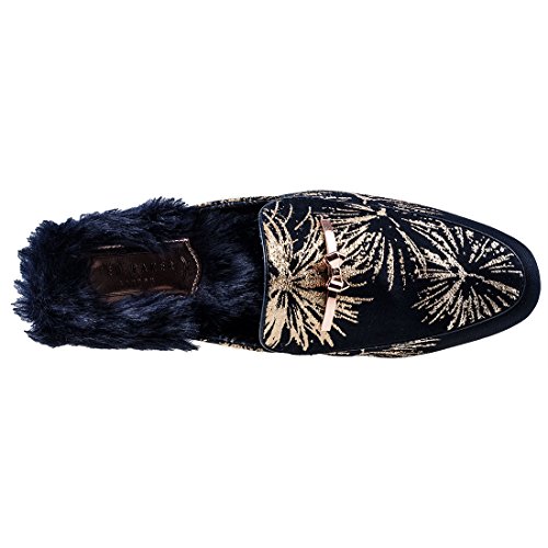 Binding : Apparel Product Description The Womens Kerriy Stardust Fur from Ted Baker combines a Textile Synthetic upper with a durable Synthetic sole. These Loafers feature Slip-on fastening, cushioned insole and Textile lining. Finished with Ted Baker branding, the style 9-16806 comes in a Navy Gold colourway. 0