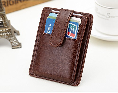 -. Feature : The Card Sleeve is the Minimalist style, be used as a business card holder, also as a full-time wallet,or Outside Wallet / The Minimalist Wallet provide 7 sleeves to hold the cards, one window to hold Driver License, one window to hold Photos, 1 slot to hold cash, bill or coins. / The Rfid Card Holder have been tested for 13.56 MHz Frequency in which our credit cards, debit cards, driver license and ID cards operate. PLEASE BE NOTED THAT the signal of some ID badge, access cards and hotel room cards which operates in 125 KHz, can not be blocked by this wallet. / Our RFID wallet not only offers security, it's also very functional. It features 6 card slots for you to place your most frequently used cards. / The Rfid wallet is designed tap and button closure to make sure card not slide out, avoiding cards missing.