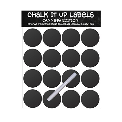 - Feature : Chalk it Up Set includes 80 round canning labels 2 inch in diameter / Includes a chalk pen / Chalkboard stickers are perfect for organizing and personalizing any space. / Simple to use. Just peel and stick. / Write on with regular chalk or chalkboard markers (like Chalk Pen included) and wipe clean with a damp cloth.