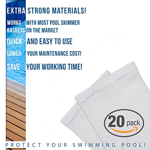 ➤ CAN BE USED WITH POOL BASKETS OF ALL SIZES: Our pack of 20 Pool Skimmer Socks is compatible with most pool baskets. ➤ The durable elastic stretches out to fit all different sizes. It is easy to use and can be slipped on the basket in few seconds.