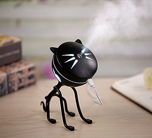 ZLMC USB humidifier office Car humidifier cat adorable humidifier cat adornment Night light for bedroom,desk (Black)