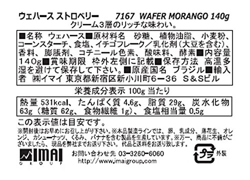 原材料:砂糖 植物油脂 小麦粉 コーンスターチ 食塩 イチゴフレーク 乳化剤(大豆を含む) 香料 膨張剤 コチニール色素 酸味料 酵素
