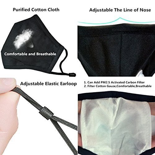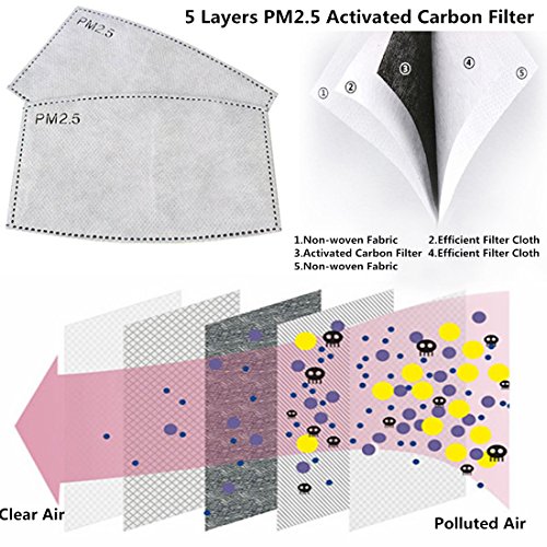 ★★★ Marygel Activated Carbon Filter Masks Features:4 Layers,outer layer is made from high grade cotton,the second layer used filter cloth,the third layers used filter cotton and the fourth layers is soft and comfortable Filter gauze.It can is added PM2.5 Activated Carbon Filter between the third and the fourth. Effective against germs,viruses,allergies,smoke,dust,odor,poison,pollution, ash, pollen,spores and dander. Filtration rate up to 97% and above,Hypoallergenic,Comfortable,Soft and Reusable