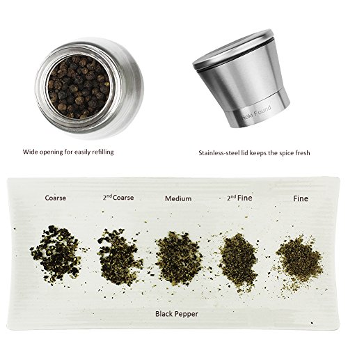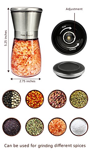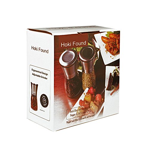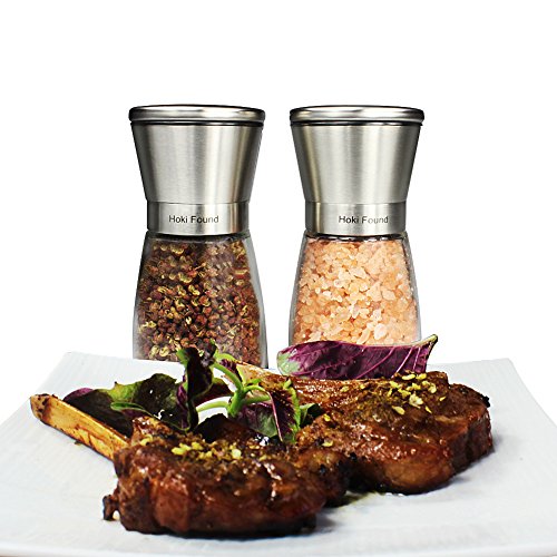 Hoki Found Thick-Glass Manual Salt and Pepper Grinder Set - Adjustable Salt and Pepper Mill (Set of 2) - Salt and Pepper Grinders - Stainless Pepper Grinder - Ergonomical Salt Grinder - Pepper Mill