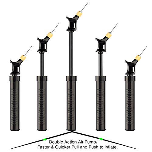 - DOUBLE ACTION BALL PUMP: Double Action Air Pump Ball Pump, Small but fast. 45-degree grip better for pumping. Connector protected during transport.