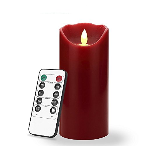 7 Inch Flameless LED Candle - Real Wax & Real Flickering Candle Motion - with Remote 24-hour Timer Function ,Burgundy color