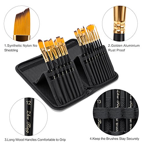 - WITH 15 DIFFERENT SHAPES & SIZES MEET ALL YOUR NEEDS - A wide variety of brushes that have different shapes and sizes to achieve maximum precision,Your Painting Brushes set comes with 2pcs Angle Shape, 4pcs Flat Shape, 2pcs Filber Shape, 1pcs Fan Shape, 1pcs Glaze Shape, 2pcs Liner Shape, 3pcs Round Shape. From the smallest details to the largest coat applications, every stroke will come to life