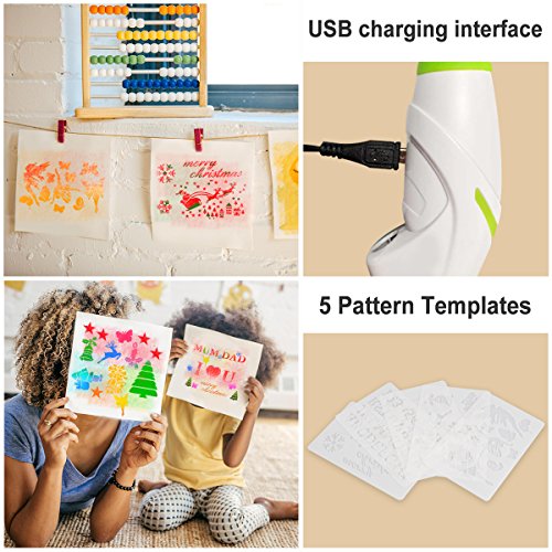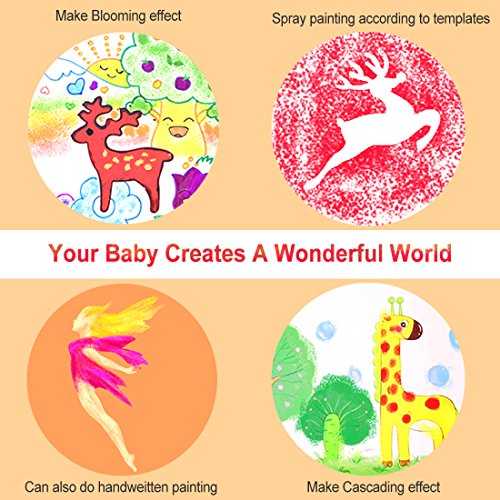 - ❤【Upgrade Version and Newly Designed】Highly effective electric painting, spraying time about 40 mins, enough for school use. Various painting templates which can be combined freely, makes children love painting. Ergonomic design, easy to grasp, spray your art with slight press, easy creation!