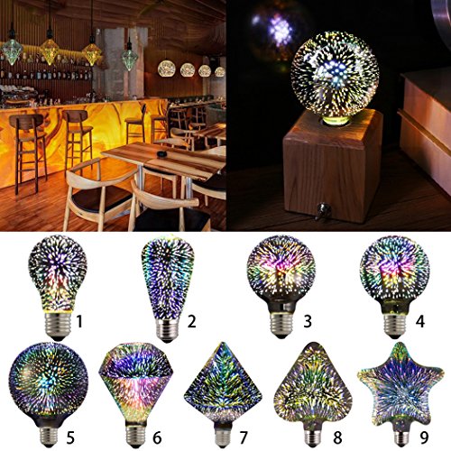 Studio : Outgeek Publisher : Outgeek Product Description Description: Voltage: 85-265V Power: 4W Color Temperature:2700K Life Span: 30,000 Hours Light Color: Multicolor Product Color: Silver and gold Material: Glass Size: A19: L*W: 6*10.5cm(2.36*4.13in) ST64:L*W: 6.4*14.2cm(2.52*5.59in) G80: L*W: 8*12.2cm(3.15*4.8in) G95: L*W: 9.5*13.5cm(3.74*5.31in) G125: L*W: 12.5*16cm(4.92*6.3in) G95 Flat Diamond Shape : L*W: 9.5*13cm(3.74*5.12in) 110 Sharp Diamond Shape : L*W: 11*17.5cm(4.33*6.89in) Heart Shape: L*W: 11.6*15.6cm(4.57*6.14in) Pentagram: L*W: 14*17cm(5.51*6.69in) Pattern: A19, ST64, G80, G95, G125, G95 Diamond Shape, 110 Sharp Diamond Shape, Heart Shape, Pentagram Note: - Please refer to the measurement. Tiny measuring error is allowable in normal range. - There might be a little color difference due to the monitor, camera or other factors, please refer to the physical item. -------------------------------------------------------- Package Including 1 x Light bulb 0