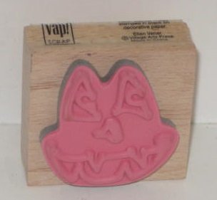 -. Title : Vap Scrap Halloween Pumpkin Face Stamp with Wood Base