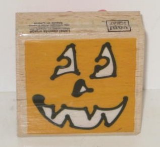 -. Feature : Rubber stamp with a wooden base ~ Pumpkin Face. / Measures 2 inches x 2". / Stamped image will be smaller.