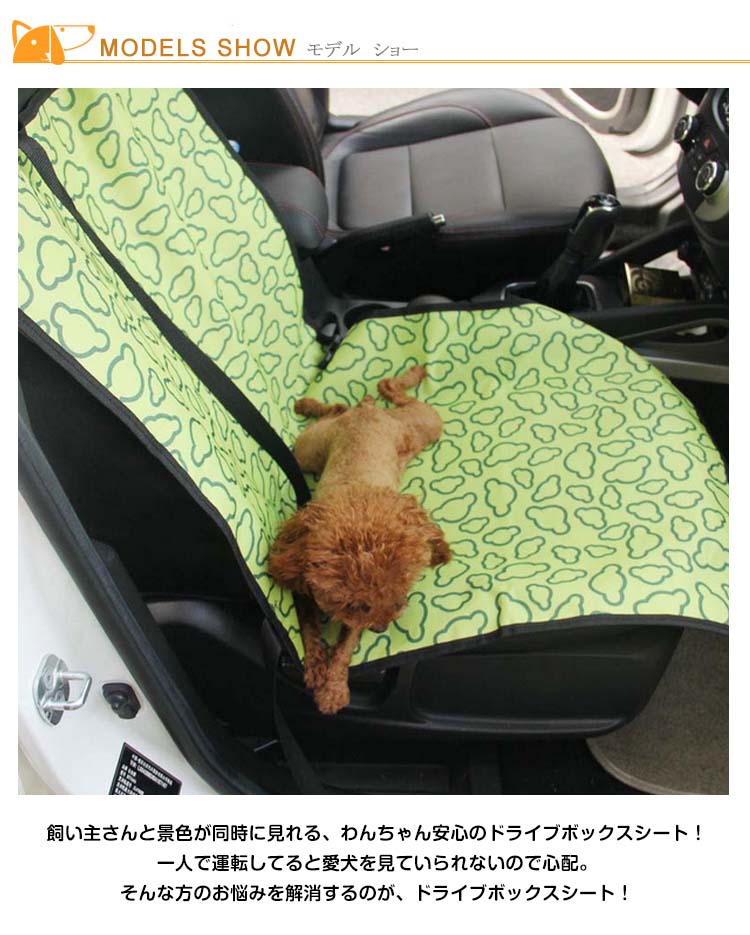 | 飼い主さんと景色が同時に見れる、わんちゃん安心のドライブボックスシート!一人で運転してると愛犬を見ていられないので心配。そんな方のお悩みを解消するのが、ドライブボックスシート!ペットのにおいや汚れ、抜け毛がシートに付くのを防ぎ、防水加工を施しております。後部座席全体を覆うシートで、愛犬と一緒に快適ドライブ!ファスナー式で片面を開けられ、愛犬の横に座る事ができ、とても便利です! | |