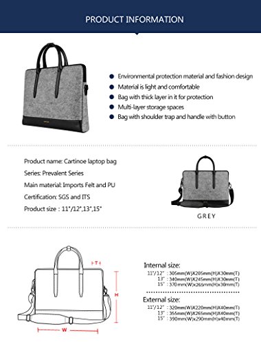 -. Feature : 100% Brand New and high quality laptop briefcase / Made of top quality wool felt and PU leather with fashion style on front side,that is anti-tear,durable,splashproof and looks more attractive. / Multi-functional design, handle, one shoulder, Which can be changed at any time, convenient to attend any occasion / suitable for 10-15.4 inch Laptop / Notebook / MacBook / Netbook / Ultrabook / Chromebook / Tablet Computers of most brands( Apple / Dell/ HP / Samsung / Sony / Acer / ASUS / Lenovo / LG / IBM / Gateway / Toshiba / Panasonic / Fujitsu etc.),may not snugly fit all computers due to variations in the sizes of different models