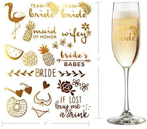 - QUICK & EASY TO APPLY: These stylish foil tattoos for the bride tribe are easily removable by rubbing baby oil or makeup remover. Wear it on your wrist, ankle, arm, back, shoulder, face, and even your hair! Planning to wear these out in the sun? Be sure to apply sunscreen first, let it dry, then apply our bachelorette tattoos to prevent any embarrassing tan lines after the party.