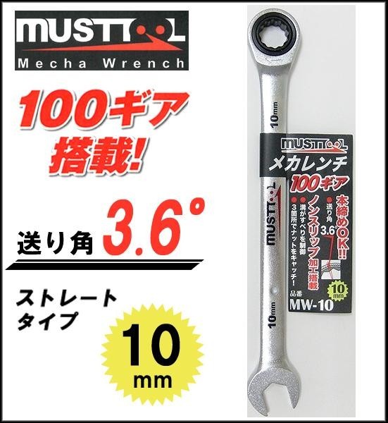| 仕様 | ■サイズ:10mm ■ストレートタイプ 【ギアレンチ部】 ■100ギア ■送り角:3.6度 ■本締め可 ■トルク値:58.1N.M 【スパナ部】 ■ノンスリップ加工 ■滑り止め加工(溝) ■トルク値:24.8N.M |