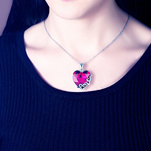 Pendant size: 1.18in x 1.10in, heart shaped. Chain size: 16in+2in, super strong rope chain with an adjustable lobster claw clasp. Weight: 0.71oz. Color: Ruby. Crystals: Swarovski. Adorable, Fashion Design, Hand Polished, Simple but Elegant.
