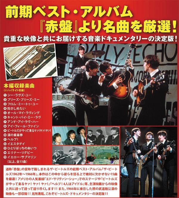 『赤盤』の愛称で親しまれる前期ベスト・アルバム『ザ・ビートルズ1962年~1966年』から15曲を厳選!1966年に来日した際の武道館公演の映像も一部収録!見所満載、これぞビートルズ・ドキュメンタリーの決定版!! |