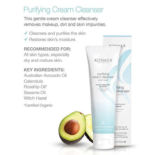 Kosmea Natural Cream Cleanser for Face – Purifying Cream Cleanser for dry skin, sensitive skin or normal skin – Certified Organic Rosehip Oil, Avocado Oil,...