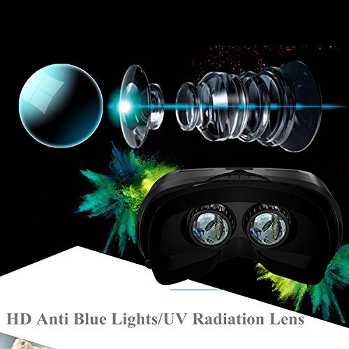 -. Feature : Can you imagine to dive in cold winter, or ride the roller coaster in big rainy day etc? It is impossible to do in real world, but with this 3D virtual reality headset, all these can be easily done by a few simple steps to turn your smartphones into a virtual reality theater. You will be fully immersed in the virtual reality world and shocked by the experience without time or space's limit / The high quality eyes preotective optical lens are cutting, coating, polishing in many times to make it premium to be used in the VR goggles. It is the solid base to create a delicate, clear, beautiful virtual reality world / This VR headset glasses is packed with a free gift of bluetooth remote controller, which will make control of cellphone more convenient and easy, it can control of the homepage, volume, music, or used as a simple selfie shutter etc. The remote fits with IOS and android, it is powered by 2 AA batteries (batteries are not included) / As the head strap, focus and object distance of the VR headset/case can all be adjusted according to individual's need, it fits for people in all ages, from kids to adults or seniors, from women to men, from children to parent etc, people can all enjoy the fantastic fun of the VR goggles / This VR glasses with remote fits for android/IOS smartphones in size 4.5-6.0inch(within 154*82mm), including iPhone 8 Plus/8/7 Plus/7/6S Plus/6S/6 Plus/6, Samsung Galaxy S8/S7/S7 Edge/S6/S6 Edge/S6 Active/S5/S4/S3 (Mini), J1/J1 Ace/J2/J3/J5/J7, A3/A5/A7(2015/2016/2017), Note 5/4/3/2, Grand Prime G530/Core Prime G360, Google Pixel/Pixel 2, LG G3/4/5, K20 Plus/V30, Spirit 4G, Moto E4/G/G4/G5/G5 Plus/G6/X/X Play, HTC 10/U11/M9/One M8/One M9/Desire 626, Sony Xperia XA1/L1/XZ/XA, Huawei etc