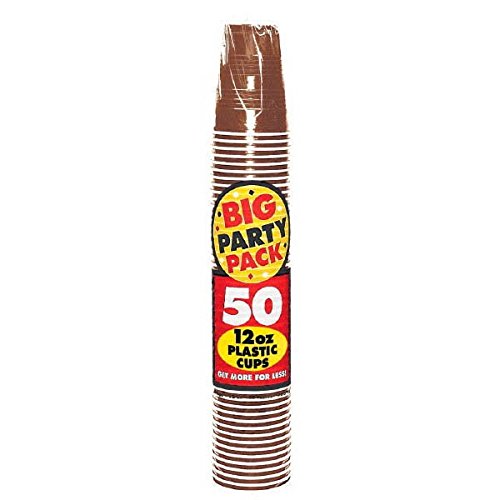 Amscan Big Party Pack 50 Count Plastic Cups, 16-Ounce, Chocolate Brown