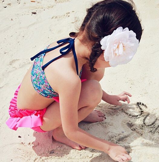 子供服 水着 女の子 3点セット フラワーラッシュ付 リボンフリル水着 海外ブランド
