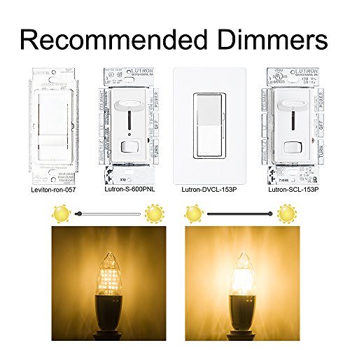 Studio : Rayhoo Publisher : Rayhoo Product Description Product Type: E12 Base10W Dimmable LED Light Bulbs 3000K (3 Pack) Base Type: E12 Shape Type: Diamond chimney Candelabra Light Working Voltage: AC 110V-130V Color Temperature: 3000K (Warm White) Incandescent Equivalent: 80-100W Luminous Intensity: 1000LM Beam Angle: 360 Degrees Size: Diameter 1.38 Inch x Height 4.65 Inch Material: Aluminum shell and High-Strength PC case Light Source: 60 pcs 2835 SMD chips Life Span: Average 30000 Hours Lifespan. Mercury-free,No UV,No Hum,No Flicker,CE and RoHS Authenticate Please Note: 1.Most traditional incandescent or CFL bulbs dimmer can not be used for LED bulbs dimming,and some poor quality dimmer may cause flicker or not-working,to dimming these LED bulbs,please upgrade your dimmer switches/lamps to support LED bulbs. 2.In LED industry,there is no unified technical specification, different bulbs and LED dimmers usually are designed by different technology,so some kinds of LED dimmer are not compatible with Rayhoo's DIMMABLE LED bulbs,especially smart dimmers and switches. Q:Why does it flicker or non-dimmable ? A : For this LED bulb, we recommend Lutron Dimmers(Lutron-DVCL-153P or Lutron DVELV-300P).Required wattage: Less than 150w. If you use other types of dimmers in high wattage,they will not work well (dim or flicker). We have 2 suggestions : 1. insert an old incandescent bulb 2. use the recommended dimmer If the bulb damaged by shipping, please contact the seller, we will send the replacement. 0