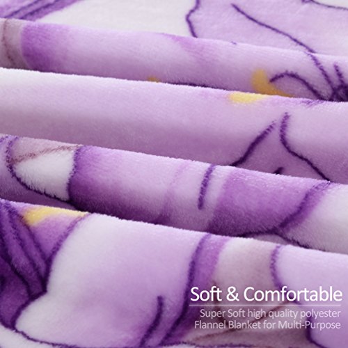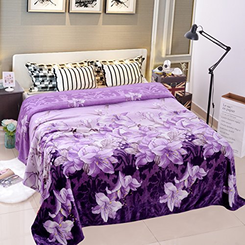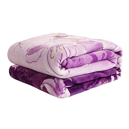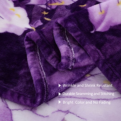 Jml Lightweight Plush Soft Warm Printed Pattern Flannel Fleece Bed Throw Raschel Blanket, King Size, Light Purple Floral