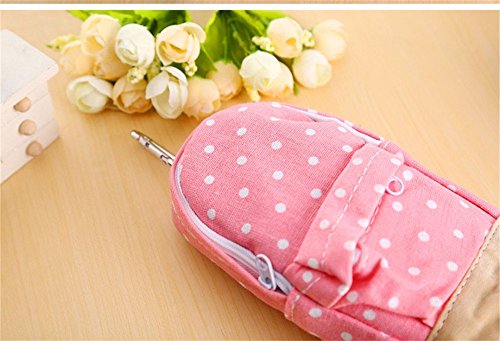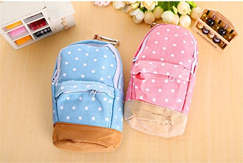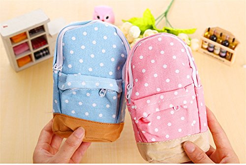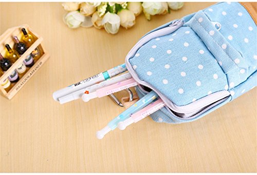 Katoot@ New korean big capacity canvas backpack polka dot pencil bag school pencil case pen curtain storage bag (Blue)