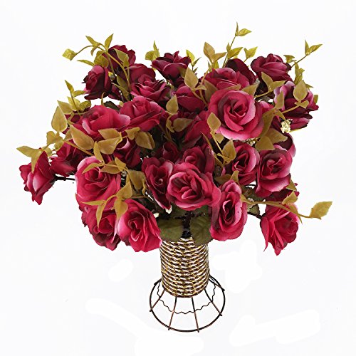 -. Title : Garwarm 4 Branch 56 Heads Artificial Silk Fake Flowers Leaf Rose Wedding Home Office Floral Decor Bouquet with Iron Vase