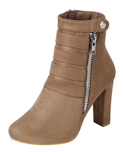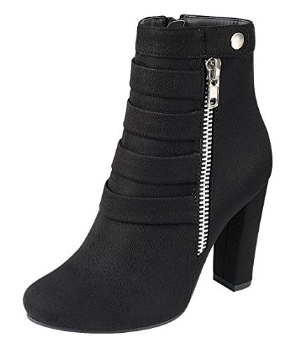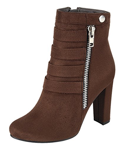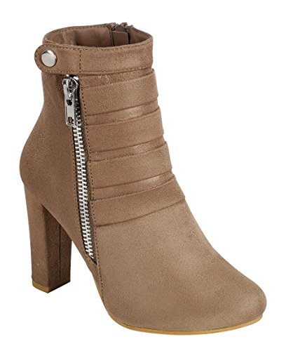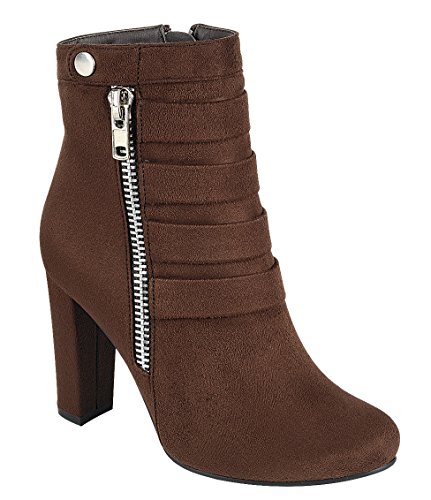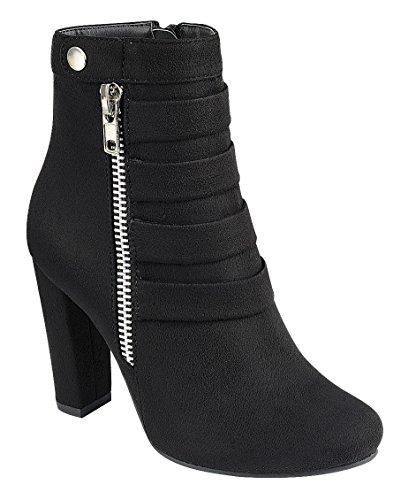 Product DescriptionThis ankle bootie from Cambridge Select features a closed toe, metallic zipper and snap detailing, tonal straps, and a wrapped heel. Imported.0