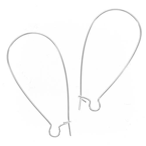 Beadaholique Earring Hooks Kidney X-Long Wires, 36mm, Silver, Pair of 2