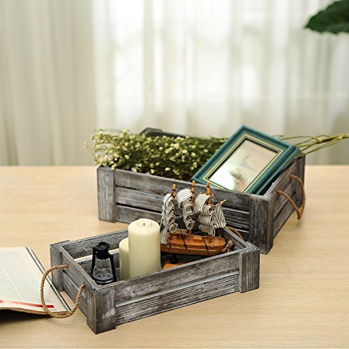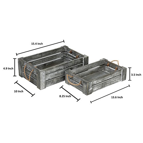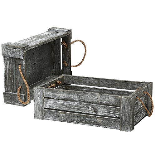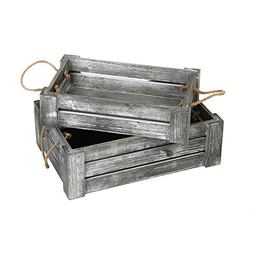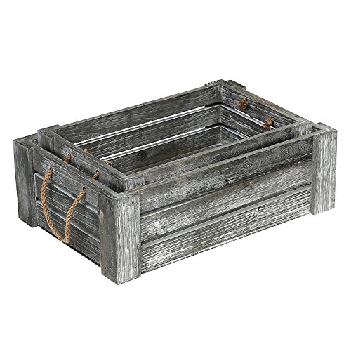 Decorative Whitewashed Gray Nesting Storage Crates with Twisted Rope Handles, Set of 2