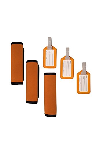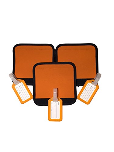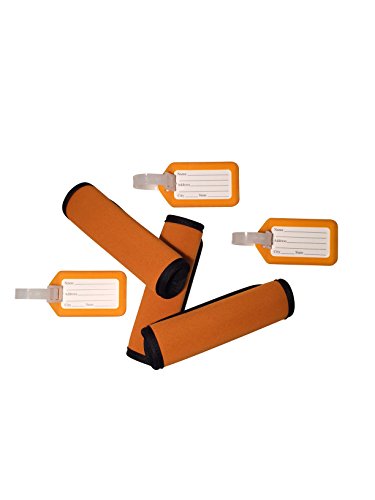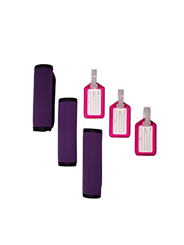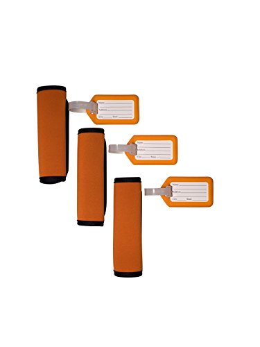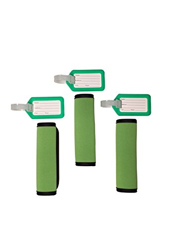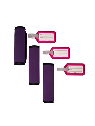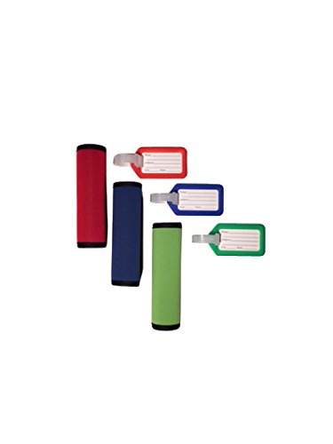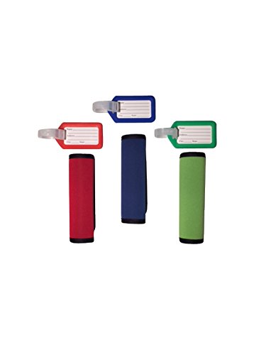 Product Description This comfort neoprene luggage handle wrap is the perfect accessory to cushion the handles of a heavy bag. These attractive neoprene handles allow you identify your bag with ease. Not only do these handle wraps provide comfort, but they are sturdy, fashionable, and will fit any bag you choose with ease. This luggage tag identifier is easily identified on any bag. The assorted color luggage tags provide you more choices, easily to identify your luggage from others. It also provides easy access to remove the inner label and provide any personal information you wish. 0