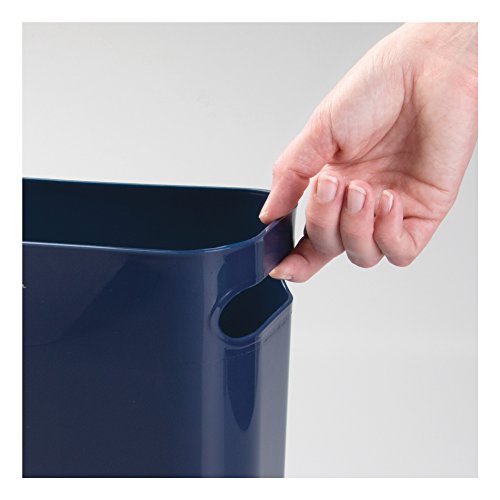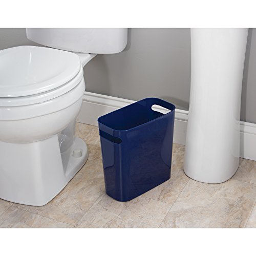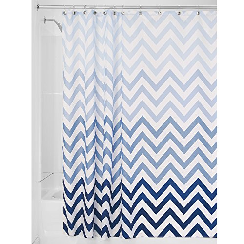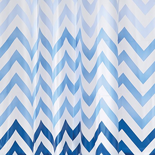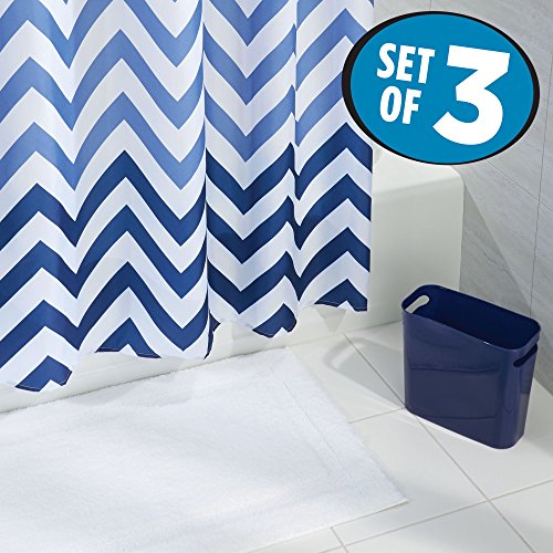 mDesign Bathroom Accessory Set, Chevron Shower Curtain, Spa Bath Mat/Rug, Wastebasket Trash Can - Set of 3, Blue Multi