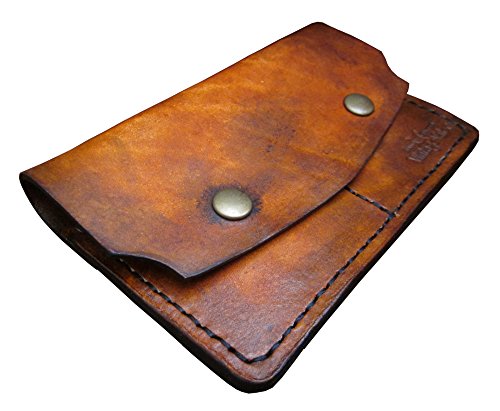 -. Feature : Durable 100% full grain leather completely handcrafted, hand-stitched, antiqued, & burnished by a single meticulous leathersmith in our small, exclusive, family-owned shop in the USA. No machines are used. Highest quality and craftsmanship proudly backed with Lifetime Guarantee. / Dimensions: Approximately 5.75" x 3.75" (Closed) / 3 Pocket Total: 2 card slots for 8 cards (and more after breaking in). 1 slip pocket for folded cash, small notepad, etc. / Extra security provided with antique brass snap closure. / IMPORTANT NOTES: Each piece has been handcrafted one at a time and not mass produced. Since they are hand antiqued, each masterpiece is unique and will look similar to the one pictured. Being artfully & purposely 'distressed', expect beautiful scratches, uneven tones, and blemishes. Your piece will be fully appreciated when in hand and will beautify (patina) with age and use. Lifetime Guarantee against any very rare flaw in workmanship with normal wear & tear.