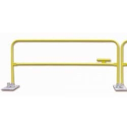 -. Feature : Part of the ultimate free standing portable fall prevention system that requires no rooftop surface attachment / Meets all applicable OSHA & ANSI standards / Powder coated safety yellow / Includes weather protected instruction holster