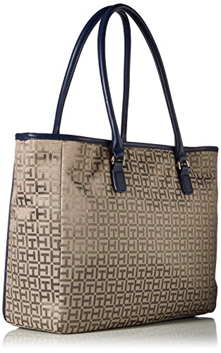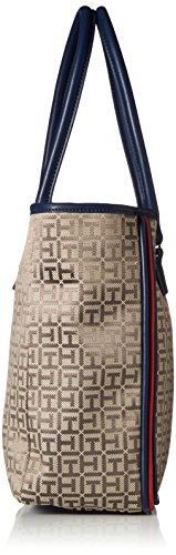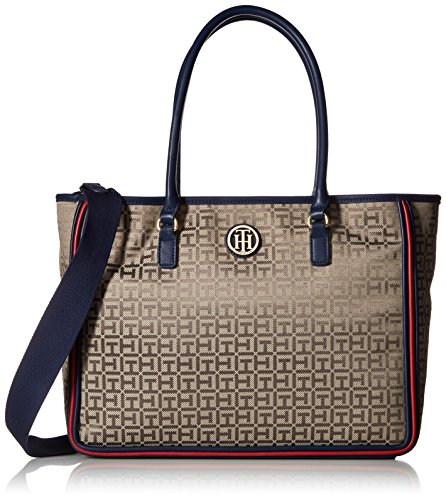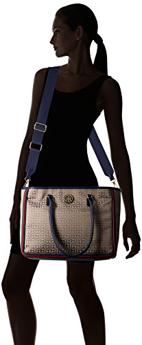 Tommy Hilfiger Tote Bag for Women Alice Jacquard, Tan/Dark Chocolate