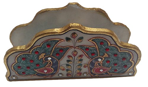 Purpledip Indian gift item: Handpainted Marble Napkin holder, Housewarming gift (10568)