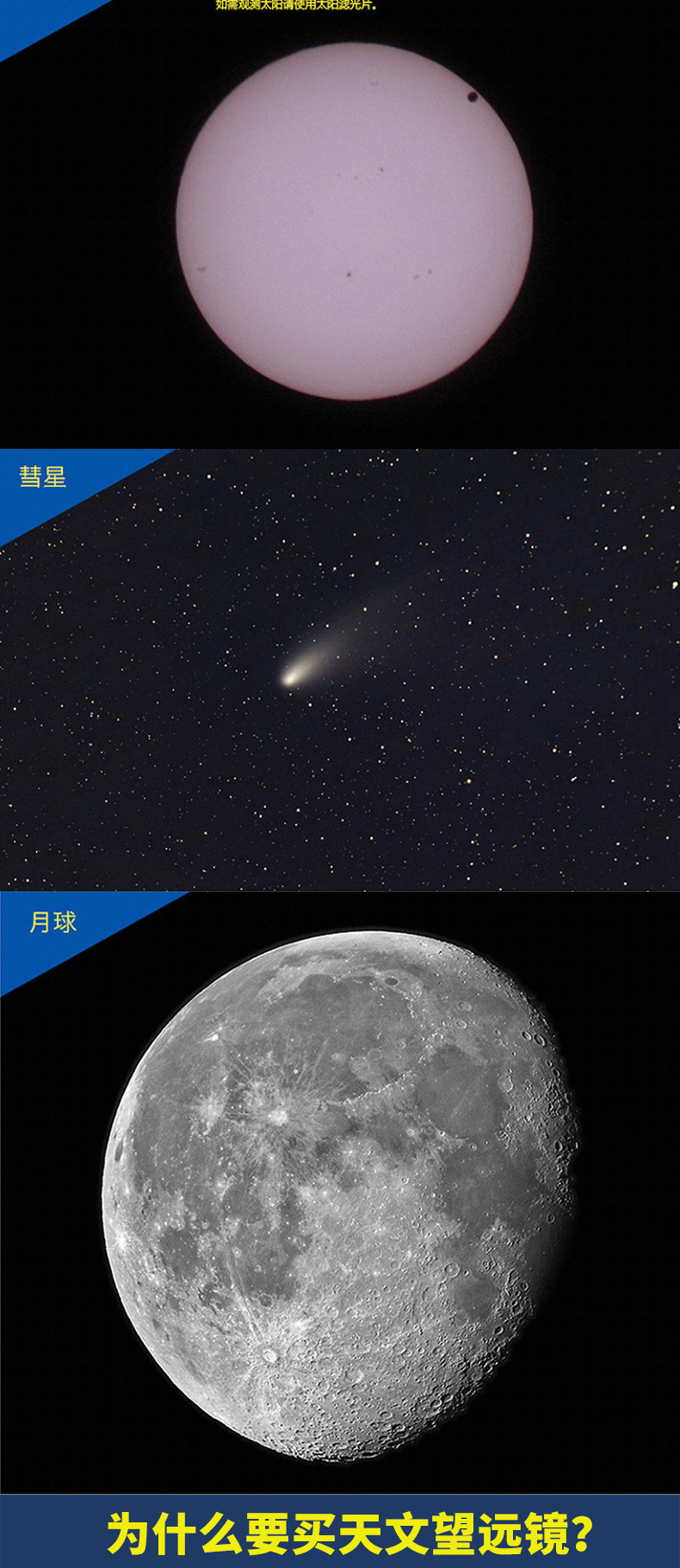 F50360是一款折射式小型天文望远镜,有较大口径(50mm)和低价的优势,不占放置地方,适合初学的天文爱好者使用,配置2个不同倍率的目镜和1.5X增倍正像镜.可以使你自由搭配,观察不同距离和大小的物体.