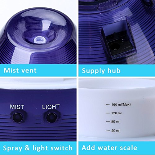 Sekway 160ml Portable Ultrasonic Aroma Essential Oil Diffuser Cool Mist Humidifier with LED Lights Changing and Waterless Auto Shut-off Function for Home Bedroom Room Office(purple)