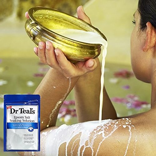 - Feature : Made famous by Cleopatra, milk and honey are used in bath rituals for their nourishing qualities, leaving skin soft and touchable. Dr. Teal's Epsom salt milk bath transforms an ordinary bath into a moisturizing spa experience by combining real milk protein, aloe vera, and vitamin E to help soften and improve skin condition. / Dr. Teal's Epsom salt soaking solution combines pure Epsom salt (Magnesium Sulfate U.S.P.), which is known to revitalize tired, achy muscles. / A therapy soak with epsom salt will help exfoliate dry skin, making your skin soft and clean. / This item comes in a resealable zip-style plastic bag for easy storage. / Soothe your body and relax your mind with Dr. Teal's.
