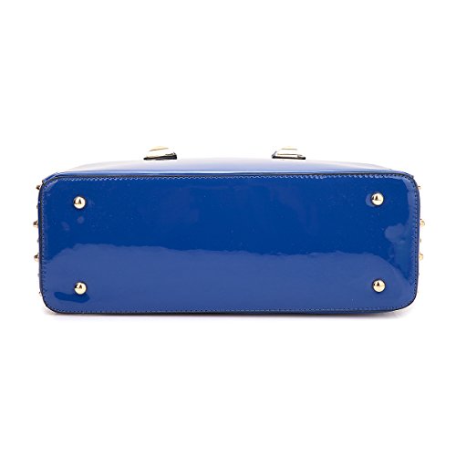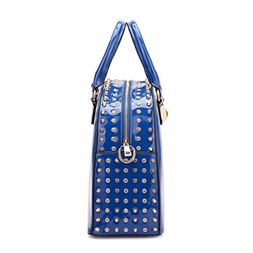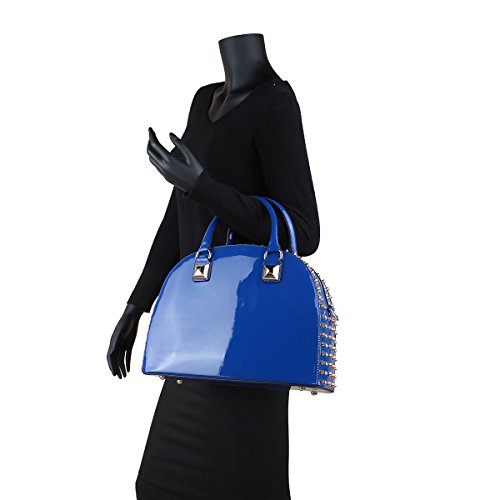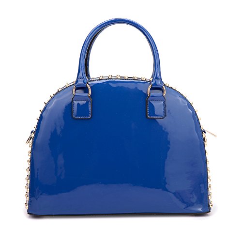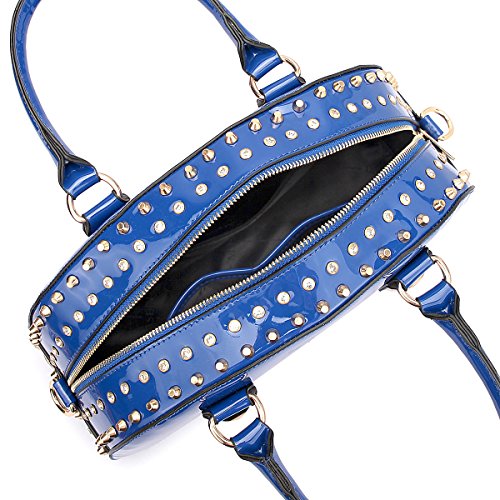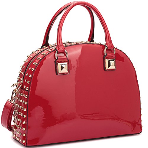 -. Feature : CHIC DESIGN & LOOK DIFFERENT: When you're on the go, you need a purse that can help keep you organized and looking cute. This Faux Patent Leather Dome Satchel Bag is a great choice for traveling or everyday use. The fashion rhinestone and studs decoration makes it perfect for pairing with all your favorite looks, especially during the fall and winter seasons. This purse will certainly become your go-to bag when you're on the move! / HIGH-QUALITY & WELL-MADE: This Dasein fashion dome satchel was made of high quality faux patent leather. Firm dual handle strap and one removable shoulder strap really helps you to carry the heavy things and keep the handbags shape. With the two studs on the bottom, they well protect the bag from being pressed and worn. / EXTERIOR & INTERIOR: ★Soft black inner lining interior has two One (1) interior back wall zipper pocket and Two (2) open pouches in one compartment. ★Faux patent leather exterior is possessed of matching gold tone rhinestones and studs design along the top zipper closure; Flat studded bottom. / AVAILABLE SIZE & COLOR: ★Approx. Size: 13.5"W x 10.25"H x 5.25"D ★Handle Drop Length: 5'' ★Shoulder Strap Length: 21''. Available in your choice of Black, Blue, Red, and Leopard. / SATISFACTION GUARANTEE: With Fashlets, you're taking no risk with your purchase. We offer 100% no risk money-back guarantee if you're not thrilled with your purchase for any reason. Just tell us and we will do our best to give you the most satisfactory solution. Please check our Fashlets storefront for more slipper styles and other deals that are waiting for you!