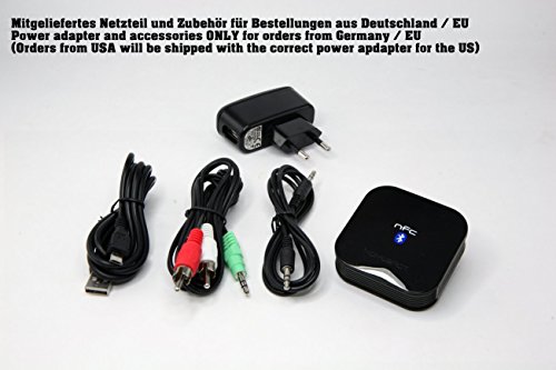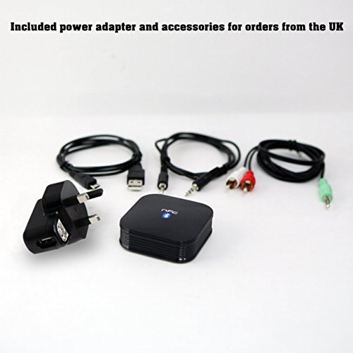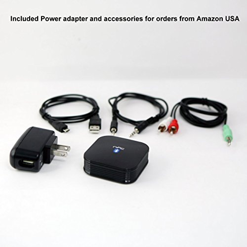 Plug the receiver into any A/V receiver, stereo system, or speaker through standard RCA or 3.5 mm jack; UL-plug AC adapter included