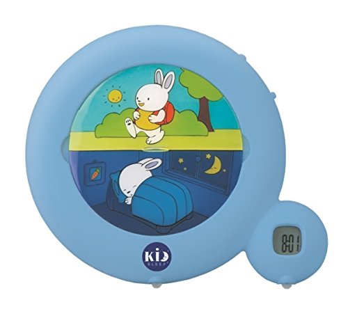 Keep your early bird in bed until it's time to rise, with our "stay-in-bed" picture clock! No time-telling skills needed: if the sleeping bunny's picture is lit, that means stay in bed and snooze awhile longer. Once the "awake" bunny illuminates, it's okay to rise. (Our child tester loved it, and actually stayed in bed...a first)! With dual nighttime/naptime settings and an alarm for later. Doubles as a nightlight, with dimmer switch. AC adaptor included.