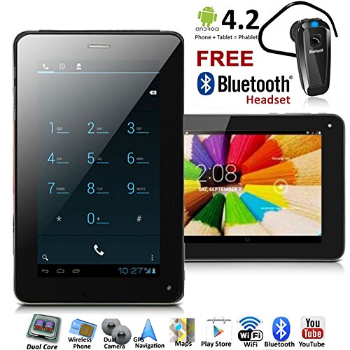 -. Feature : 7.0 inches Android 4.2 Tablet PC + GSM Wireless SmartPhone (Call as mobile phone) 2-in-1 with Google Play Store and HD Capacitive Multi-Touch Screen / Powered by Allwinner A23 Cortex-A8 Processor 1.5GHz CPU, 4GB Internal Memory, Android 4.2 Jelly Bean Operating System, Integrated 802.11 b/g/n, Bluetooth, Dual-Camera and more. / GSM Unlocked and works with any gsm wireless carriers in the world |Make and receive calls directly from the tablet itself with the built-in MIC and speaker / WiFi 802.11 b/g/n Support - Connect to internet for A full Internet experience | Bluetooth enabled - connect to any bluetooth headset handsfree / Support Google Play Store and preinstalled - access to millions of free and paid-for applications available to download straight to your phablet.