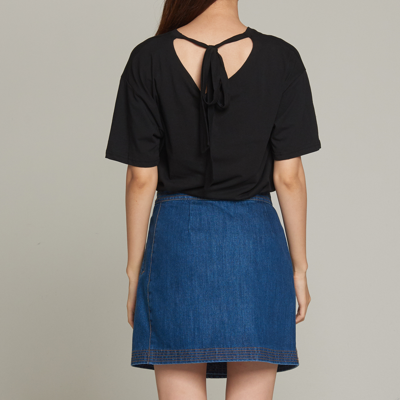 퀄리티 있는 프린트 디자인과 등 쪽의 넥라인의 리본 디테일이