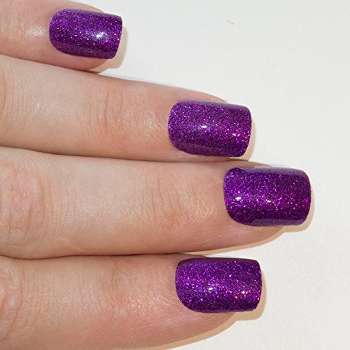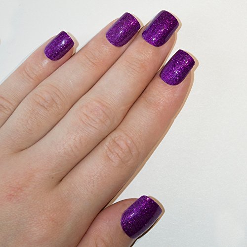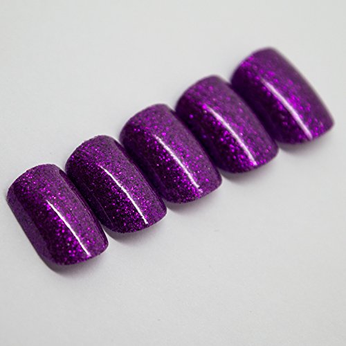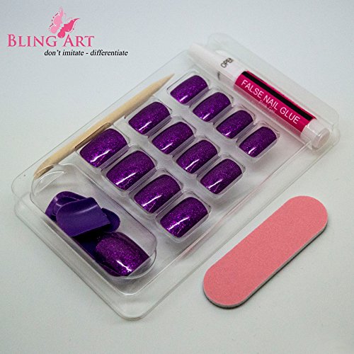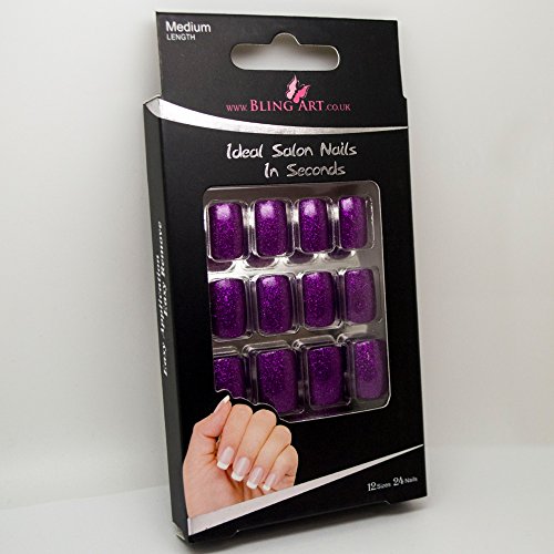 Bling Art False Nails French Manicure Purple Gel Glitter Medium 24 Tips UK