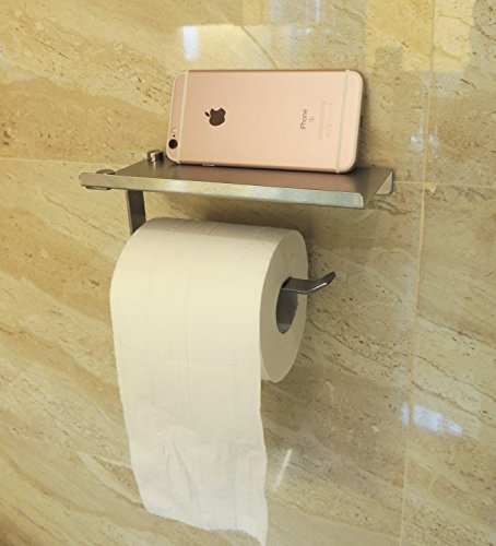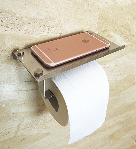 Toilet Paper Holder Wall Mounted Bathroom Tissue Holder With Phone Holder Shelf Rack(Sliver)