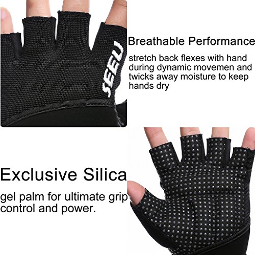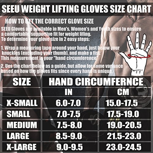 Studio : SEEU Sports Inc. Publisher : SEEU Sports Inc. Binding : Misc. Product Description SEEU? Women's Men's Weight Lifting Gloves with 17.5" (45 cm) Wrist Wrap ABOURT SEEU?: We Pay More Attentions on Material,Design Quality To Make Best Weight Lifting Gloves (Callouses and Blisters Guard, Hand Protection,NON-Slip,No Palm Stitching Rip,Great Grip,Powerful Wrist Support And Exceptional Fit) Material for Palm Back: Breathable and high elastic mesh fabric ( cross Lycra ) on back offers good flexibility of fingers and ventilation to absorb sweats and keep hands dry, comfortable and long-term stable. SPECIAL FEATURES: Integrated 17.5"(45cm) long wrist wrap with velcro closure allows you to wrap around twice and adjust freely to get the best comfort and wrist support for your liftings and strength training. Who can benefit from using weight lifting gloves? >Athletes and gym goers >Both beginners as well as senior workout people >Both men and women (make sure to measure your hands according to the sizing chart) >Anyone who needs an enhanced grip and suffer from calluses or blisters from heavy workouts What programs/exercises can our gloves do? Mainly used for Crossfit(WOD), Weightlifting, Powerlifting, Fitness Cross Training, Bodybuilding and Medium-Heavy Gym Workout, such as Dumbbell lifts, heavy Barbell lifting, Pull ups, chin ups and other strength exercises, also for mountain hiking, camping etc. How to Wash these gloves? Handwash ONLY: Do NOT USE laundry detergent , use fabric softener and brush dirty parts gently, then clean and air dry. ( You can also take gloves on to wash.) Size Chart: SIZE Chart- Palm Circumference XS - 15.0-17.5(CM) 6.0-7.0(IN) S - 17.5-19.0(CM) 7.0-7.5(IN) M - 19.0-20.5(CM) 7.5-8.0(IN) L - 21.5-23.0(CM) 8.5-9.0(IN) XL - 23.0-24.5(CM) 9.0-9.5(IN)